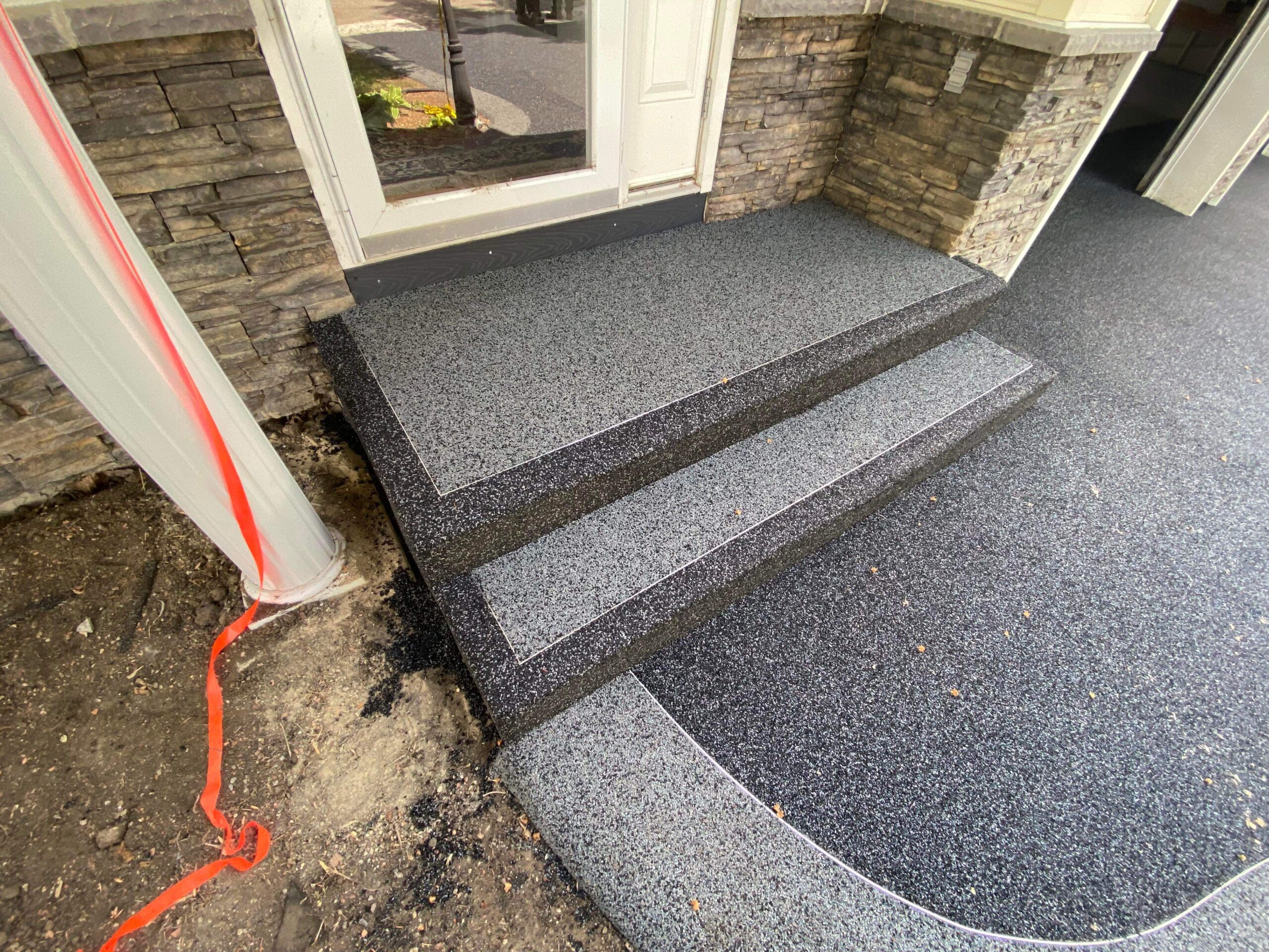 Safe, non-slip rubber surfacing for stairs and walkways — easier snow/ice removal and better traction than concrete.